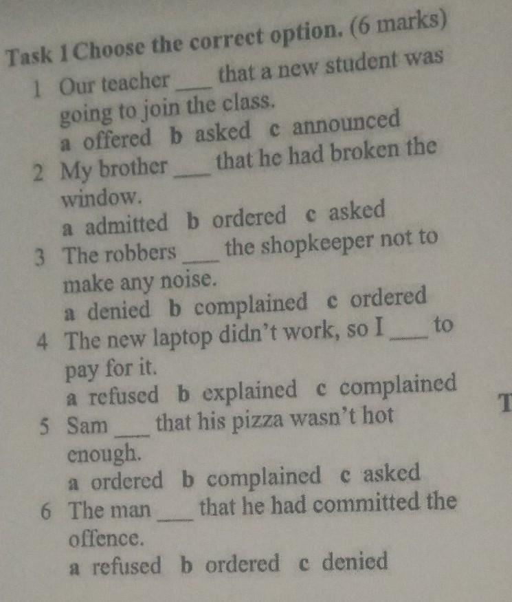 1 c, 2 a, 3 c, 4 a, 5 b, 6 c