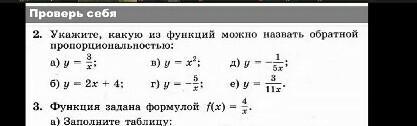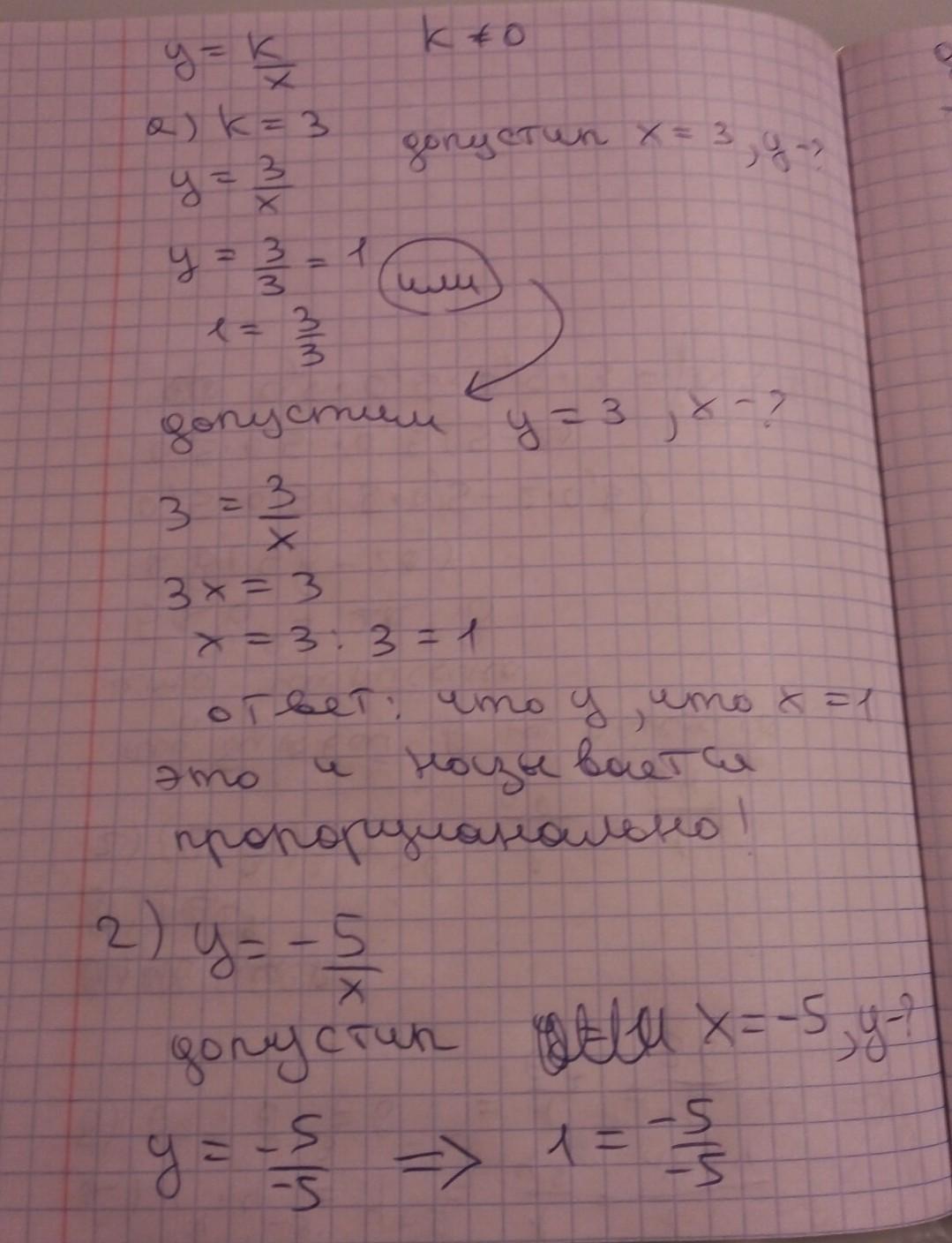 функцию вида y=k/x, где k≠0, называют обратной пропорциональностью