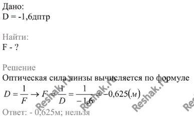 2. Оптическая сила линзы равна -1,6 дптр. Каково фокусное расстоя-