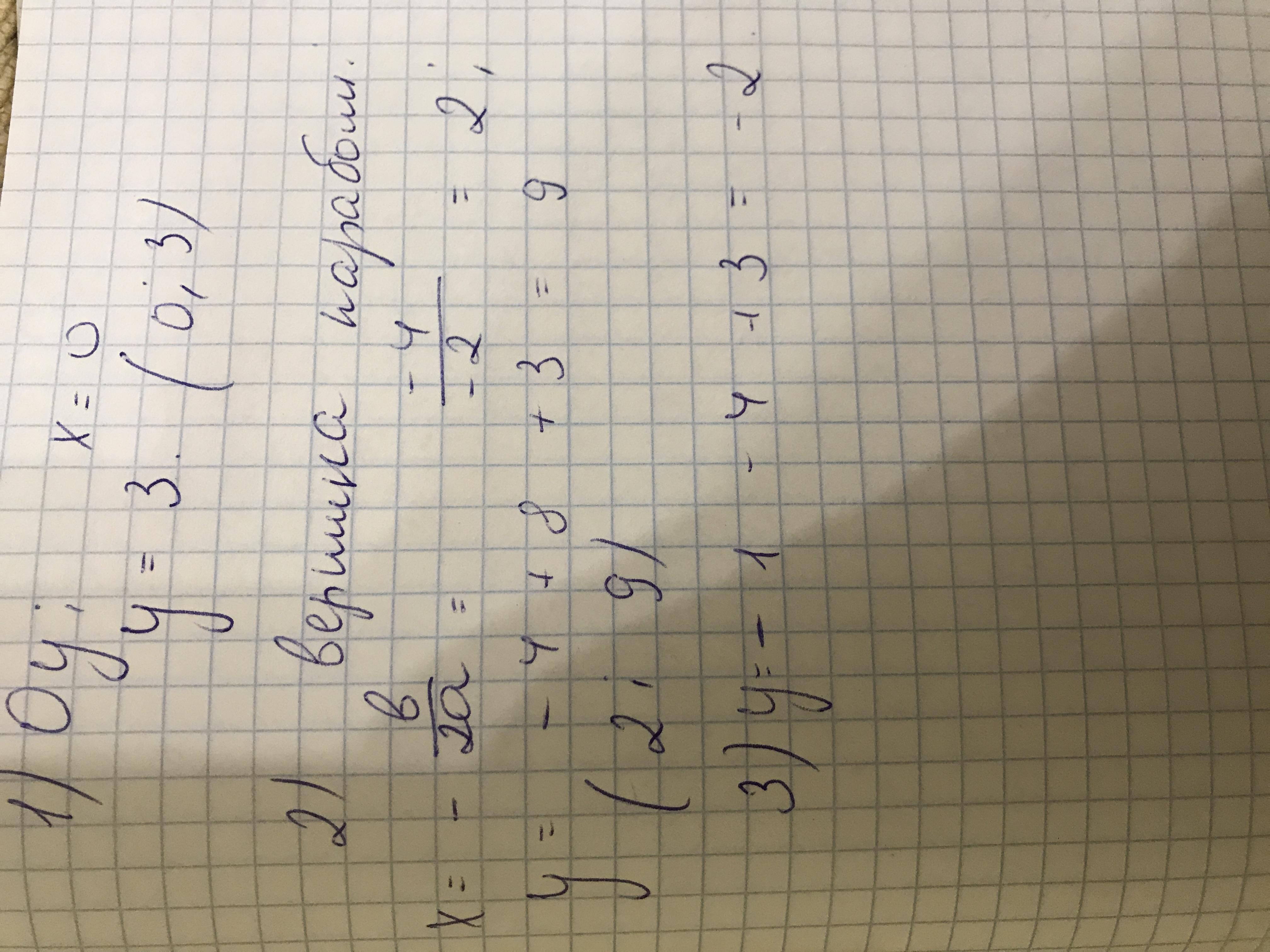 3) координаты вершины параболы ( ; );