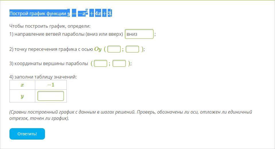 (Сравни построенный график с данным в шагах решений. Проверь, обозначены ли оси, отложен ли единичный отрезок, точен ли график).