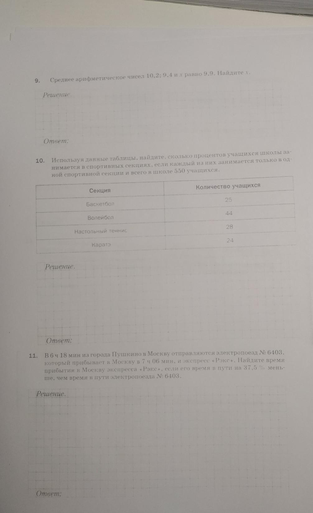 9)(10.2+9.4+x)÷3=9.9