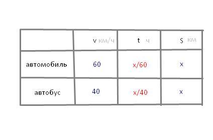 Из пункта А в пункт В одновременно выехали автомобиль и автобус. Скорость автомобиля 60 км/ч, а скорость автобуса 40 км/ч. Найдите расстояние между пунктами А и В, если автомобиль приехал в пункт В на 12 минут раньше автобуса
