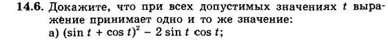 (sint+cost)²-2sintcost=sin²t+2sintcost+cos²t-2sintcost=sin²t+cos²t=1, т е при всех допустимых значениях t, значение выражения равно 1.