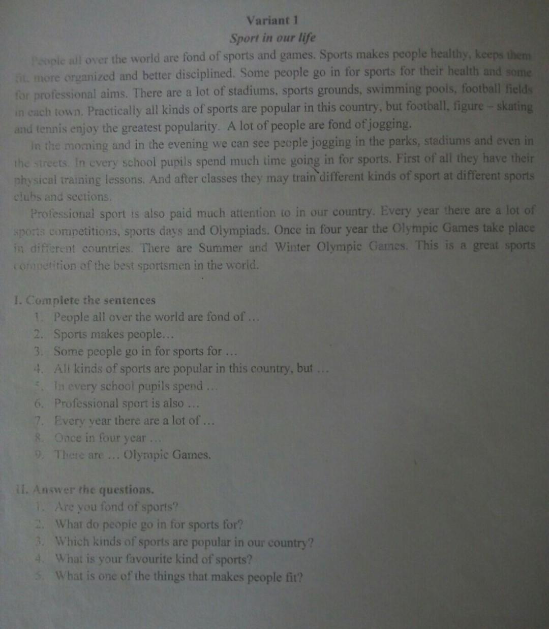 2) Sport makes people healthy, keeps them fit(не ясно что написано) more organized and better disciplined.