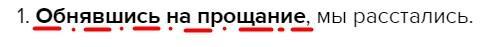 1. Обнявшись на прощание, мы расстались.