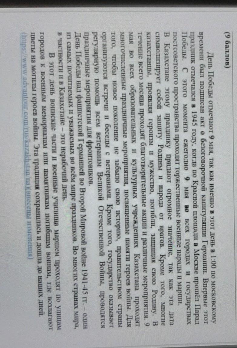Составьте диалог на тему «День Победы в Казахстане». Включите в диалог свои