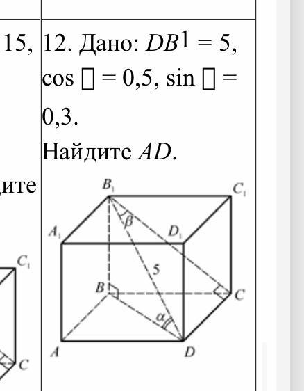 cosα=BD/DB1, отсюда BD=DB1*cosα=5*1/2=5/2