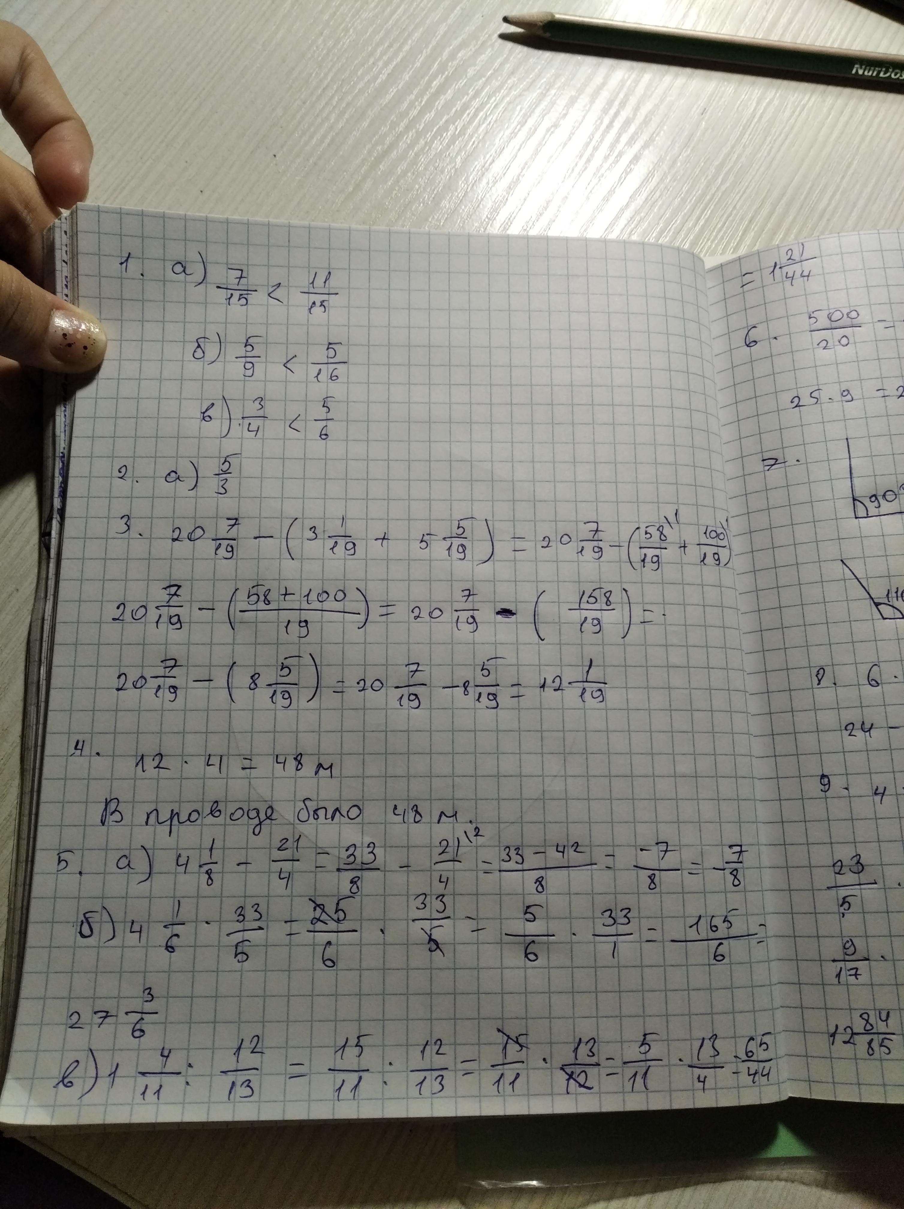 5. Вычислите: а) 4 1/8-21/4; б) 4 1/6∙33/5; в) 1 4/11:12/13.