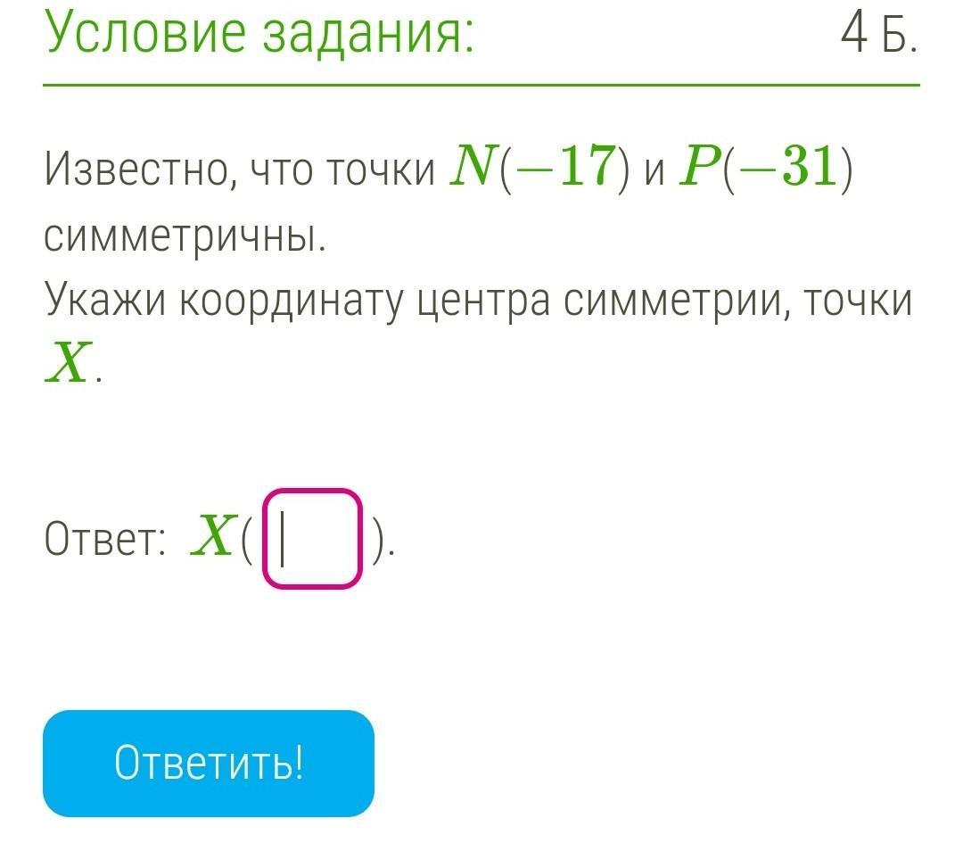 Известно, что точки N(−17) и P(−31) симметричны.