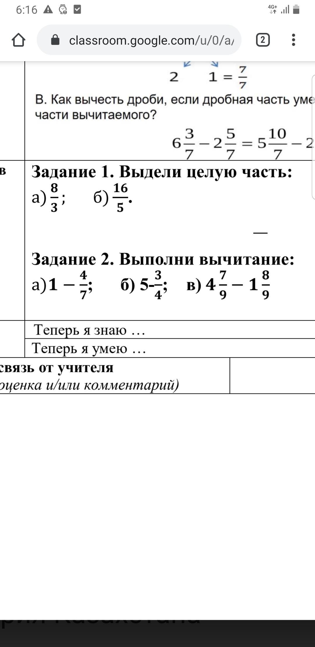 а) 1 - 4/7 = 7/7 - 4/7 = 3/7