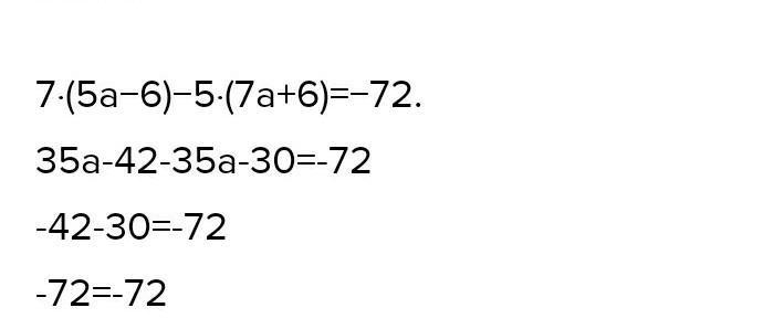 7⋅(5a−6)−5⋅(7a+6)=−72.