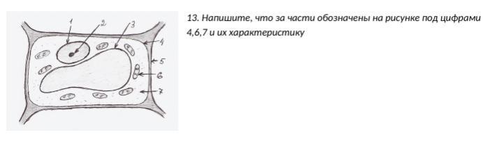 4) оболочка 6) хлоропласты 7) цитоплазма