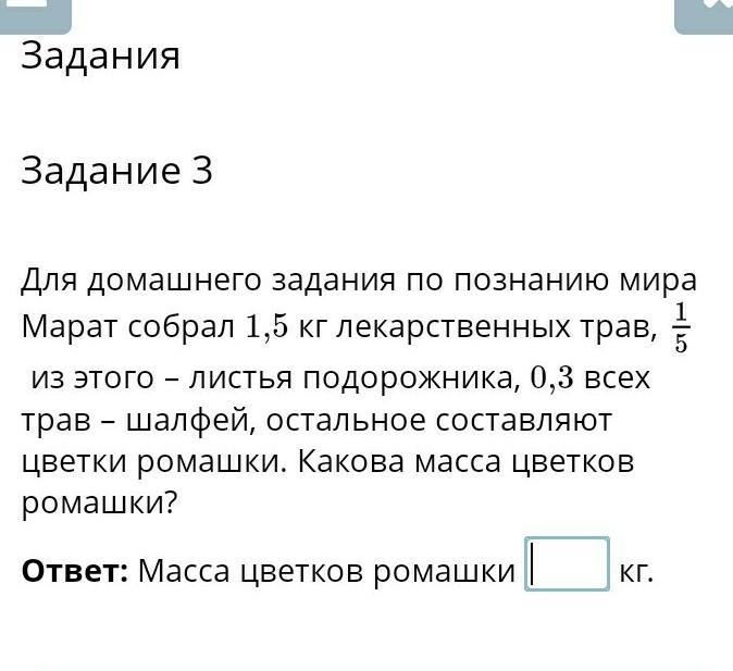 1 - 0,5 = 0,5часть масса цветов ромашки