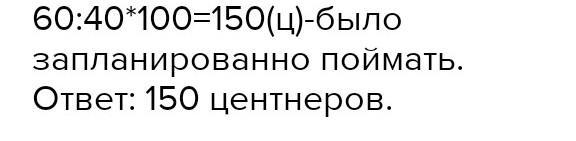 рыбаки выполнили план на 140% потому что их больше плана на 60 центнеров Сколько центнеров рыбы составляет улов по плану?