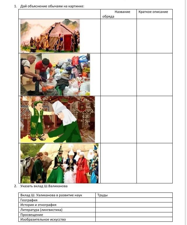 А вот 2 задание я не знаю!Помогла с тем,чем могла! А и да, ты можешь и сократить описания обычая-обряда!