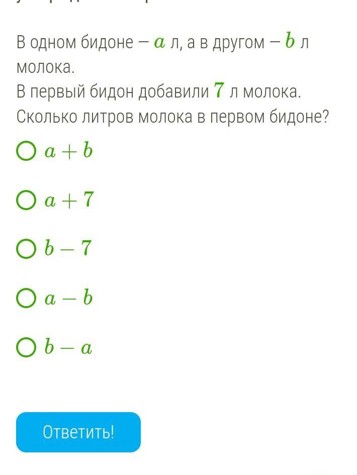 Вариант a + 7, потому что в a, тоесть первый бидон, добавили 7 литров молока