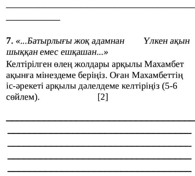 мінездеме беріңіз.ОғанМахамбеттің іс-әрекет арқылы дәлелдеме жазыныз