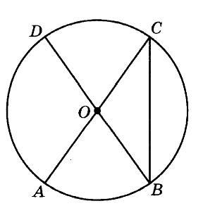 Отрезки AC и BD — диаметры окружности с центром в точке O. Угол ACB равен 23°. Найдите угол AOD. Ответ дайте в градусах.