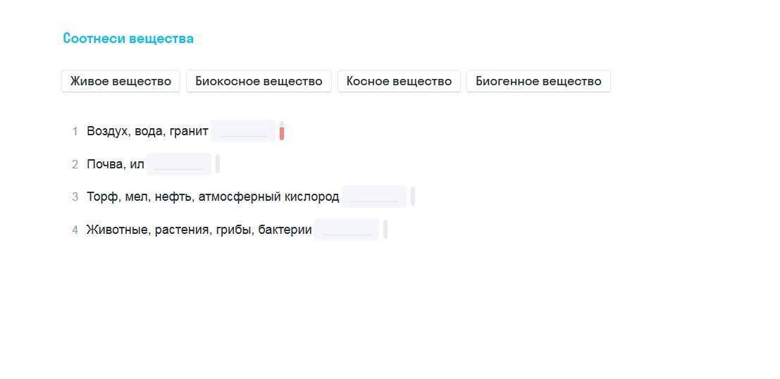 Биокосное вещество — неорганические вещества, преобразованные деятельностью организмов . Примеры: сланцы, известняк, нефть, ил, являющиеся конечным продуктом распада и переработки бактериями умерших и животных растений.