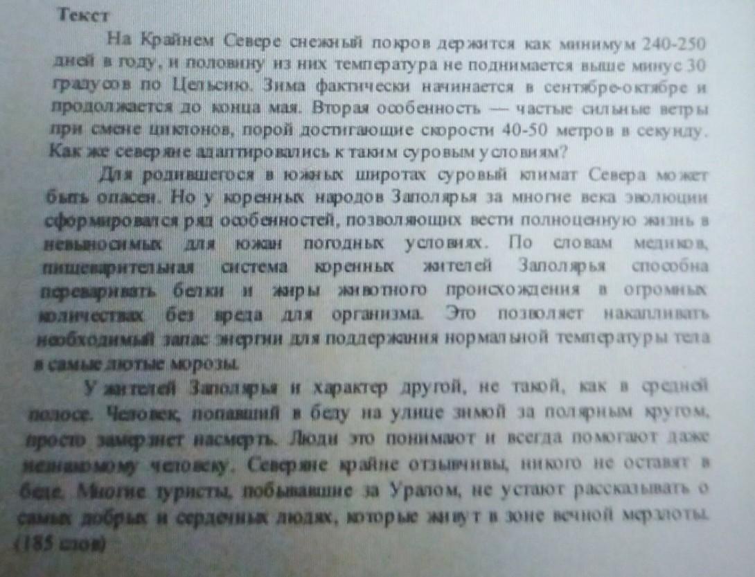 3. Тема текста - Быт человека, живущего на Севере