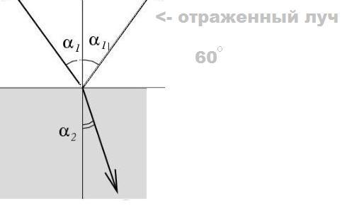 с) вычислите угол между падающим и отраженным лучами