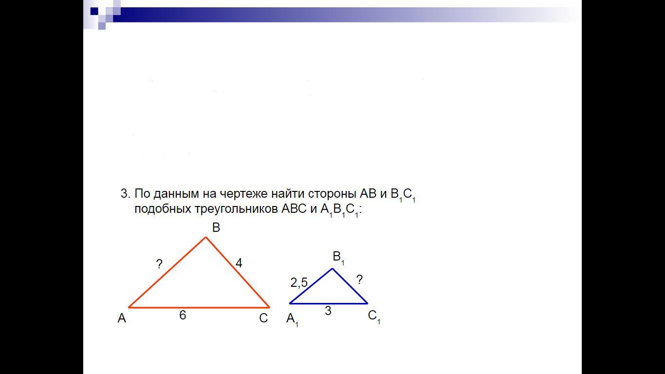 стороны треугольников связаны соотношением 6:3 = 2 (т.е. стороны треугольника АВС больше в ДВА раза, чем стороны треугольника А1В1С1 и наоборот (стороны А1В1С1 МЕНЬШЕ в ДВА раза, чем стороны АВС))) вот и все...