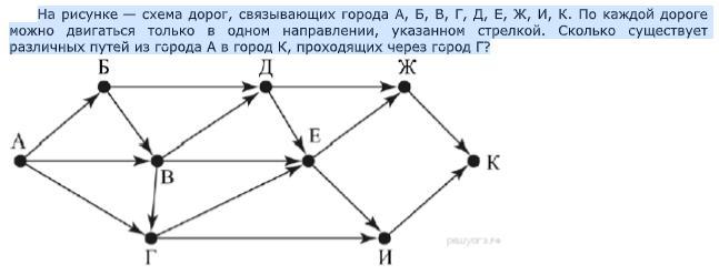 различных путей из города А в город К, проходящих через город Г?