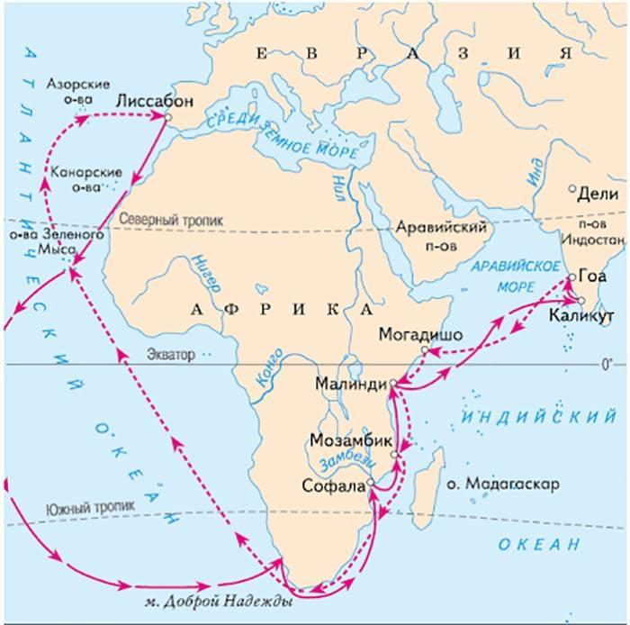 Связь между Атлантическим и Индийским океаном доказал Васко да Гама, когда в 1497 году отправился из Лиссабона в Индию, обогнув Африку с юга.Тем самым он открыл морской путь из Европы в Индию.