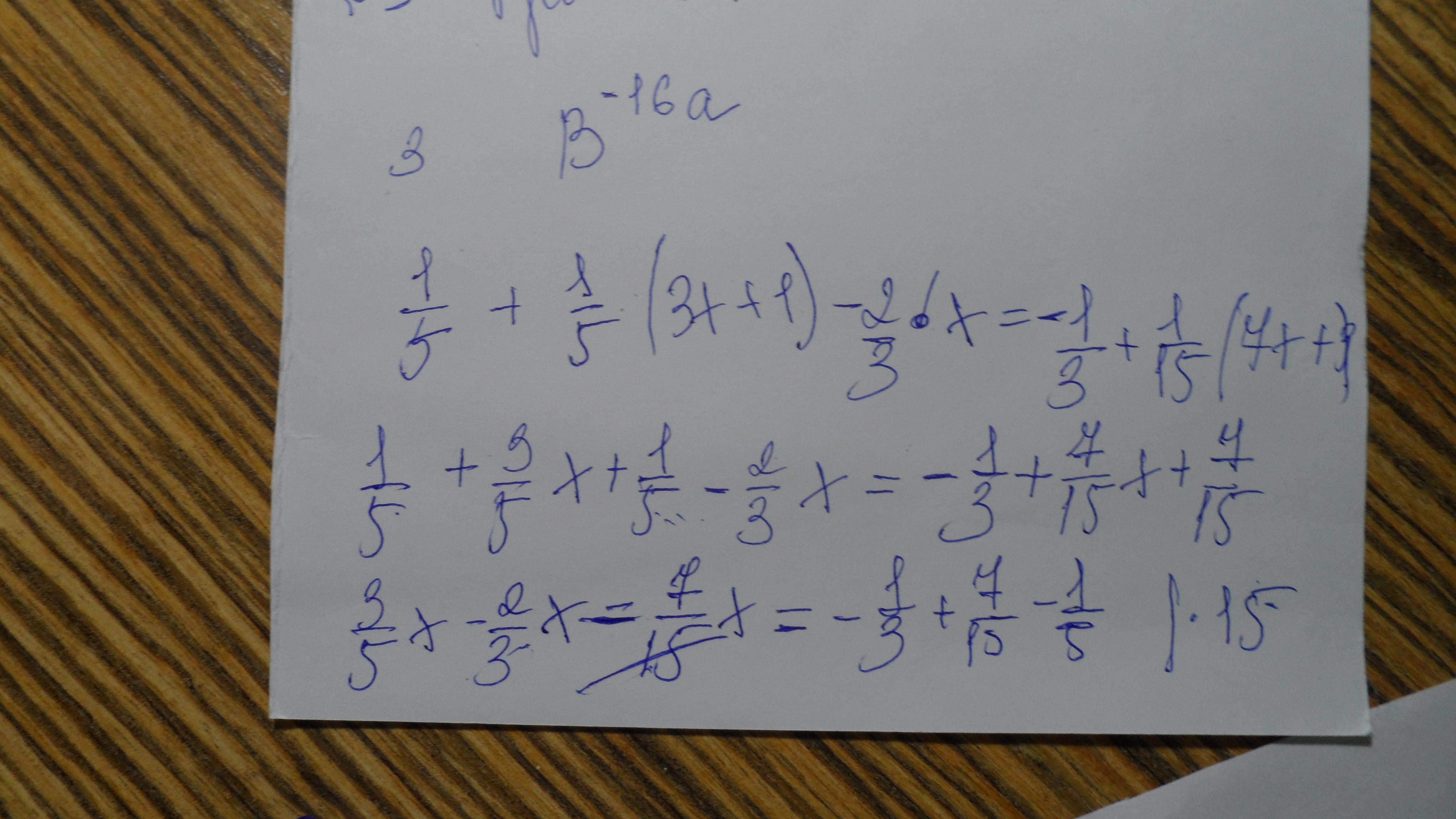 домножаем всё уравнение на 15, что бы избавится от знаменателя, затем с иксом в левой части без икса в левой и решаем как уравнение