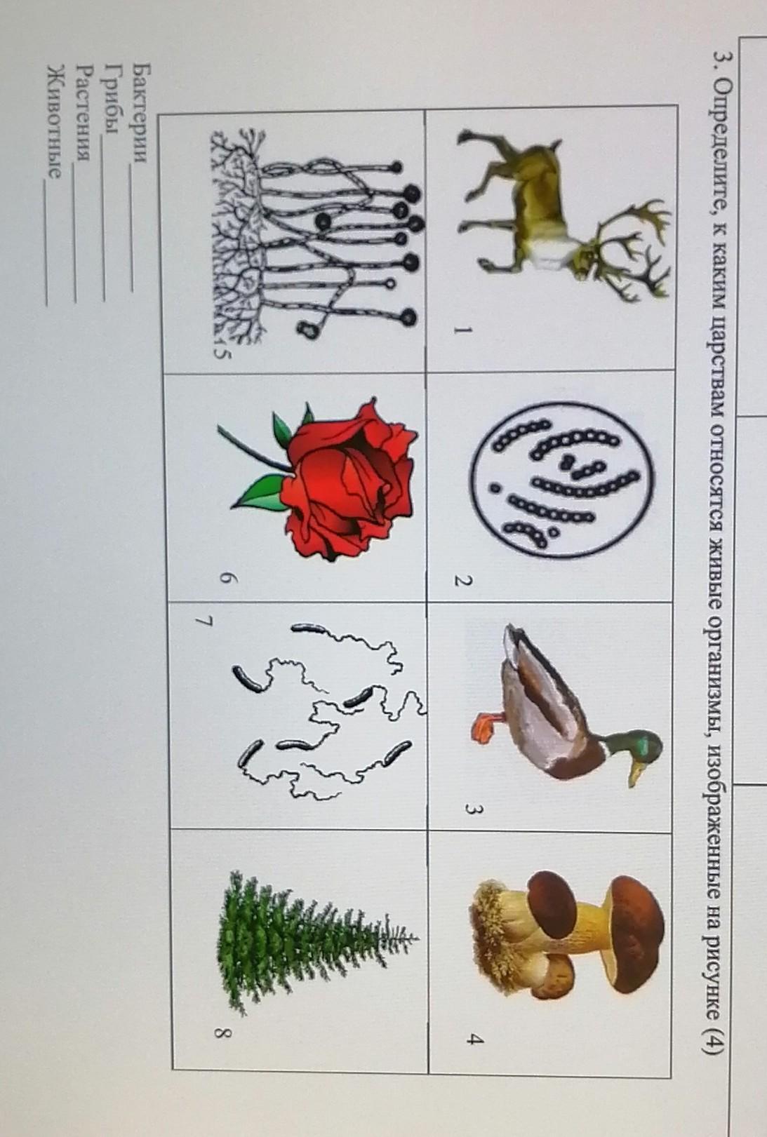 Определите каким царствам относятся живые организмы изображенные на рисунке бактерии Грибы растения животны