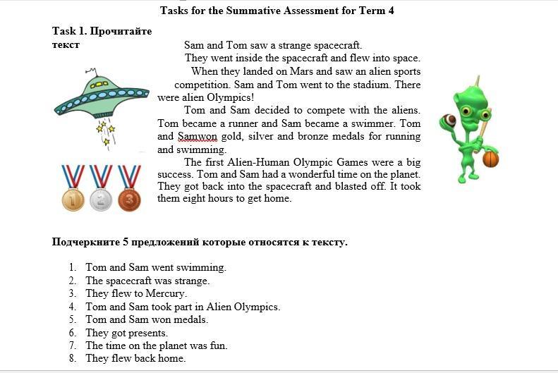 Первое задание - Прочитайте текст и Подчеркните 5 предложений которые относятся к тексту.