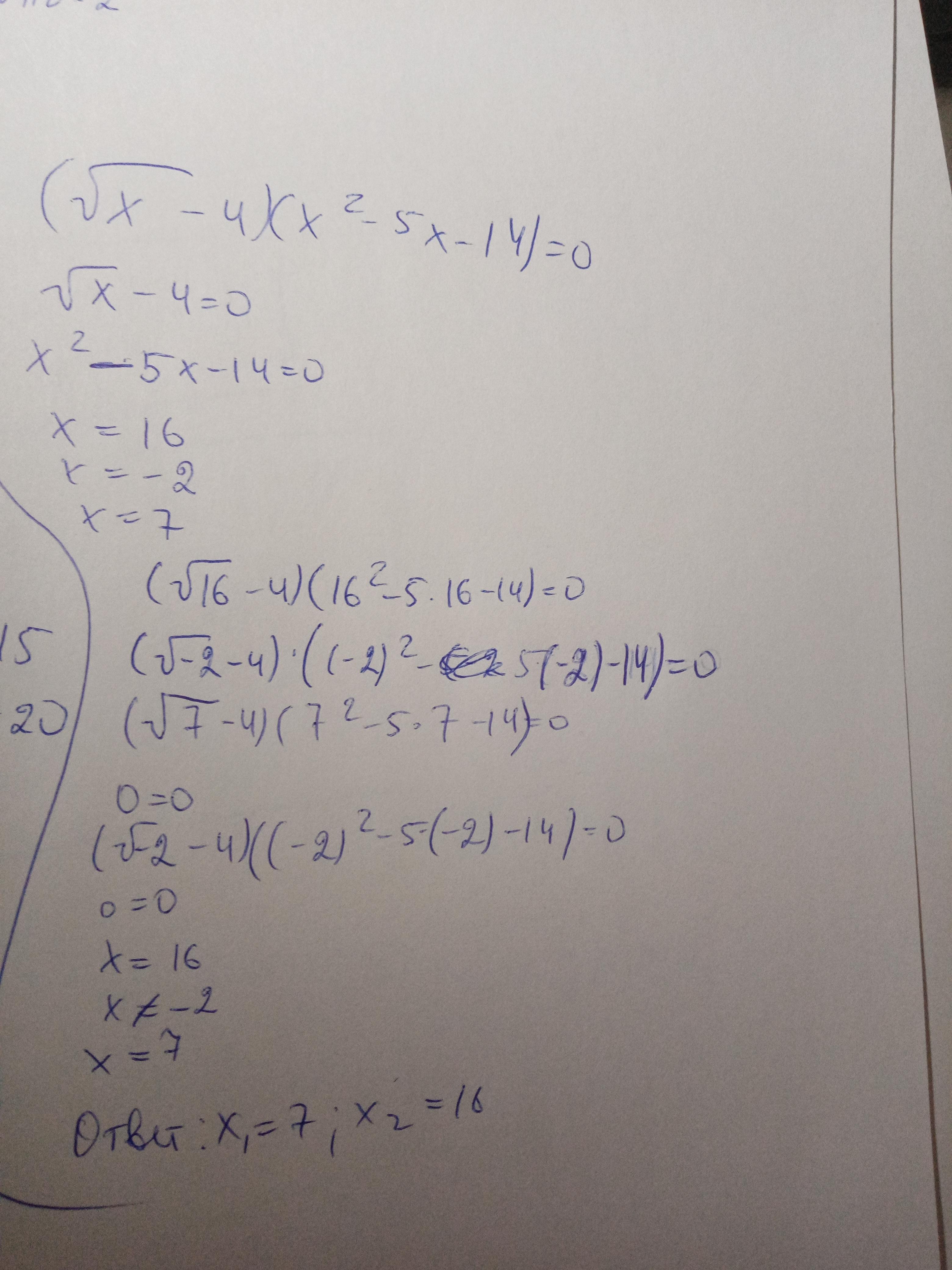 Корень не удовлетворяет ОДЗ, поэтому окончательно имеем два корня: х = 16 и х = 7