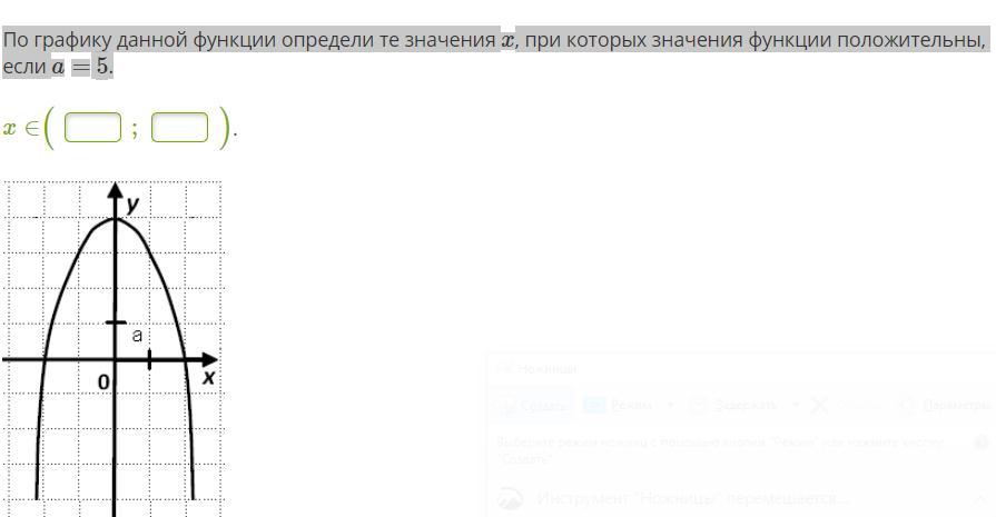 По графику данной функции определи те значения x, при которых значения функции положительны,