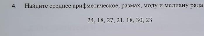 Размах: 30 - 18 = 12, медиана: 21, мода: 18, среднее арифметическое: 161 : 7 = 23.