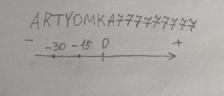 На координатной прямой число −30 от числа −15 находится...