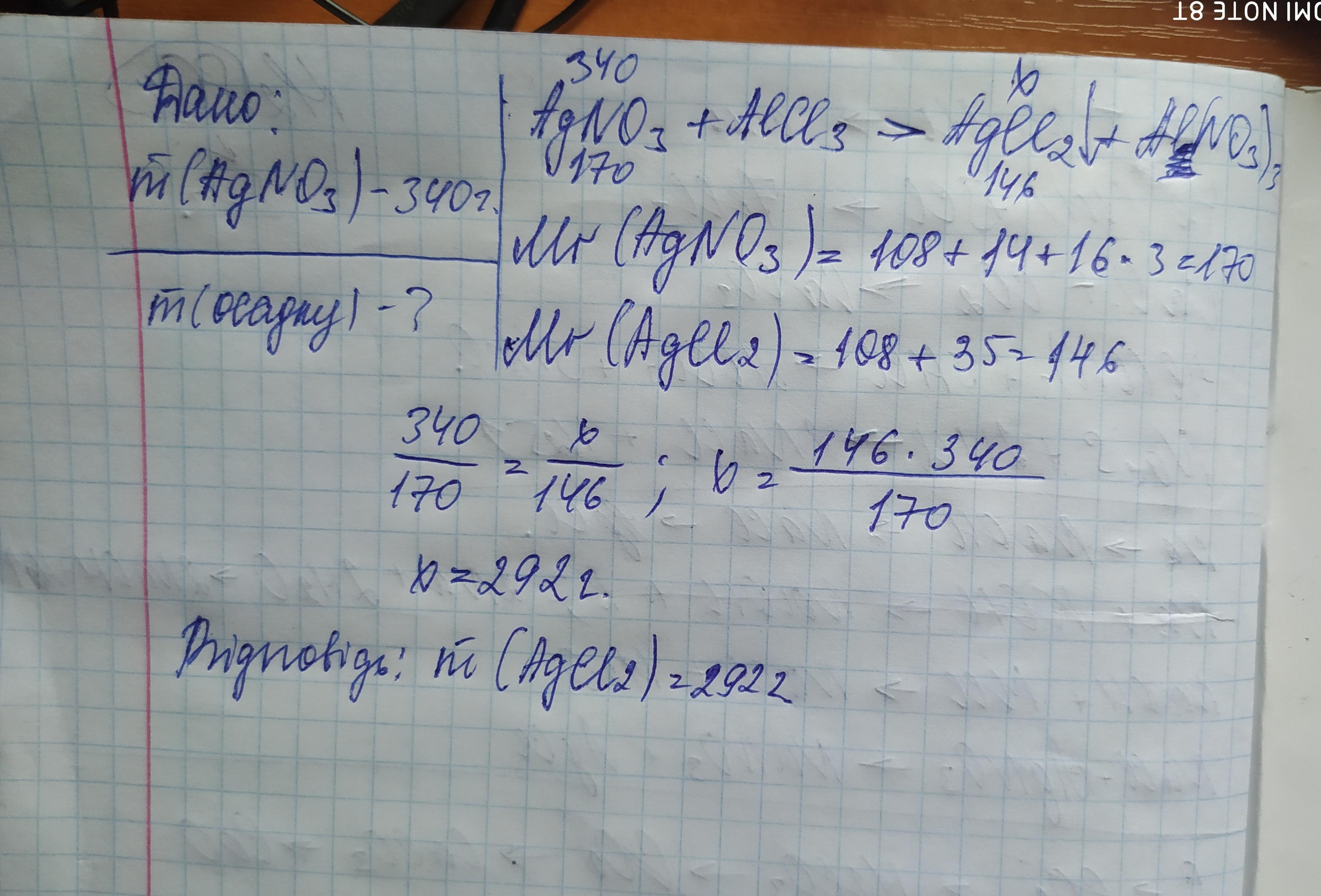 К 340 г. раствора нитрата серебра добавили избыток раствора хлорида алюминия.