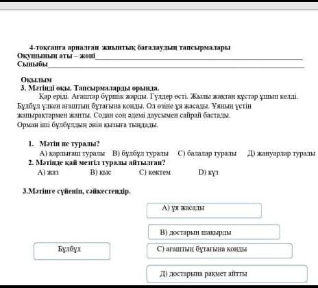 3.А) ұя жасады.