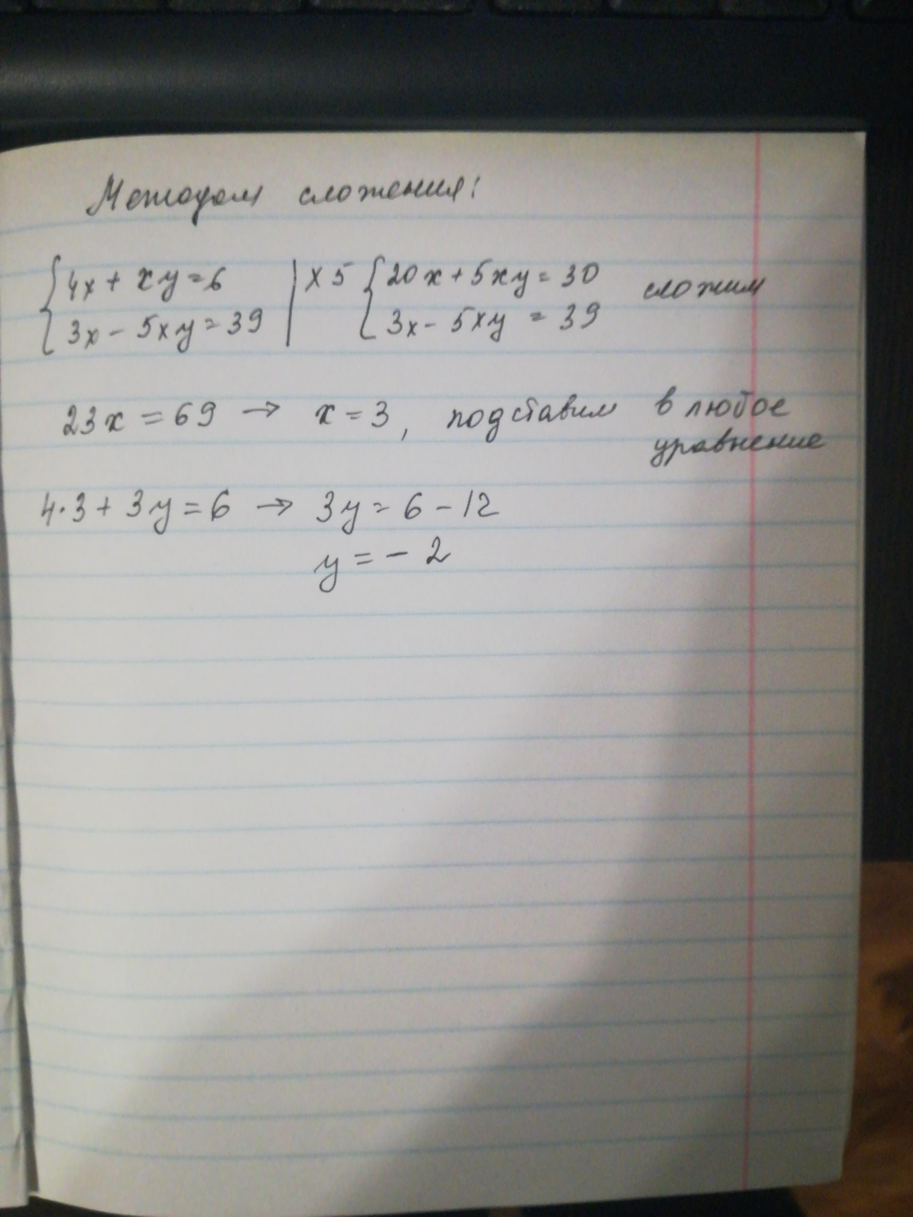 помножимо перший вираз на 5 і додамо до 2 виразу 1 , і виходить що 23х=69