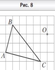 Перерисуйте рисунок 8 постройте фигуру, симметричную треугольнику ABC относительно точки O
