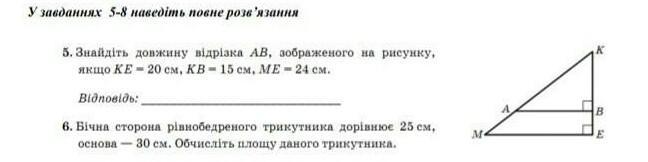 Объяснение:5)AB⊥KE, ME⊥KE ⇒AB║ME,прямая,параллельная стороне тр-ка отсекает от него треугольник подобный данному, значит ΔМКЕ подобен ΔАКВ;
