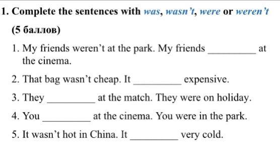 1. Was 2. Were. 3. Was. 4. Werent. 5. Wasnt