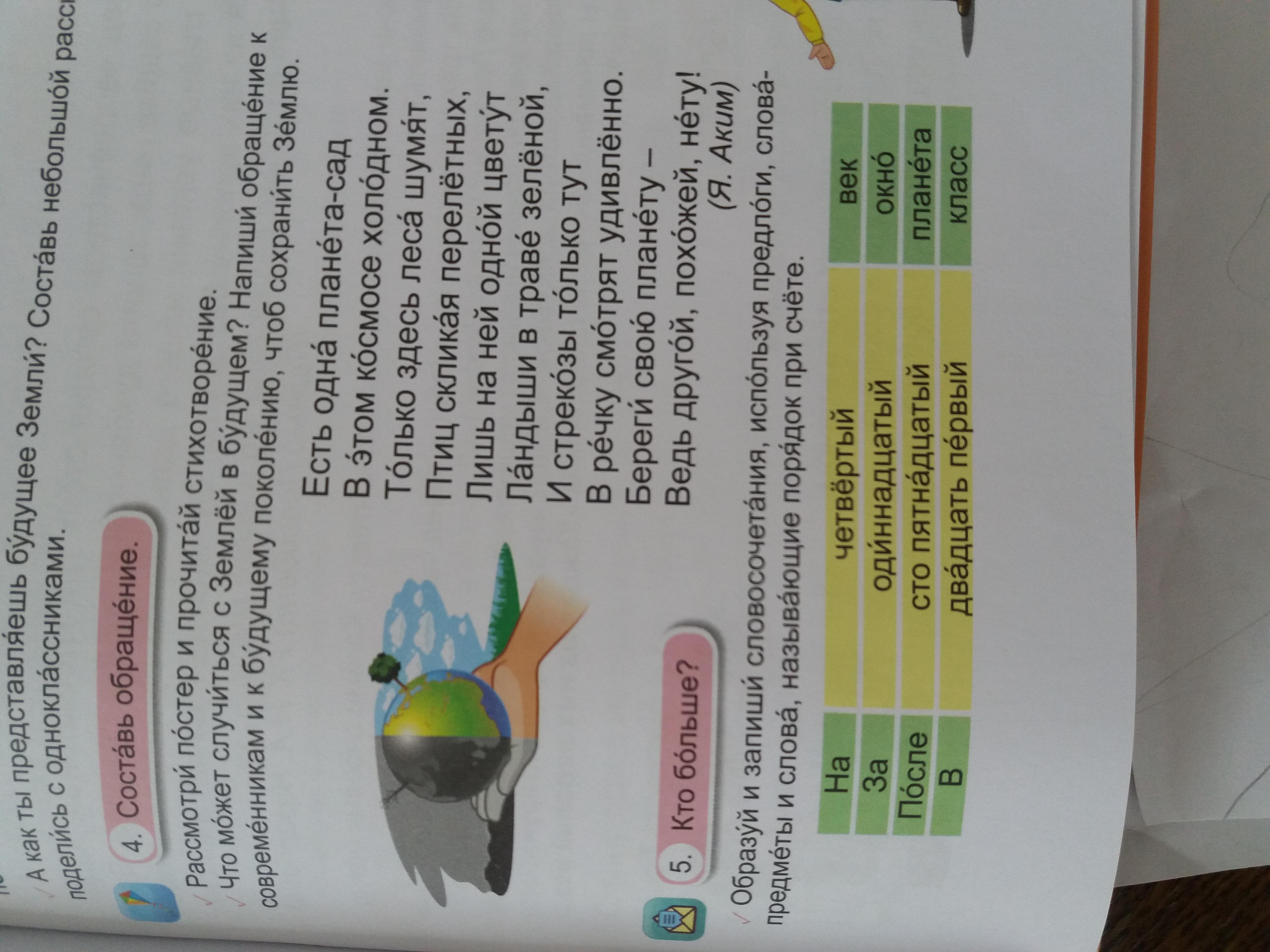 Помогите пожалуйста русский язык 4 класс. Упражнение 4. Надо написать обращение к современникам и к будушему поколению, чтоб сохранить Землю