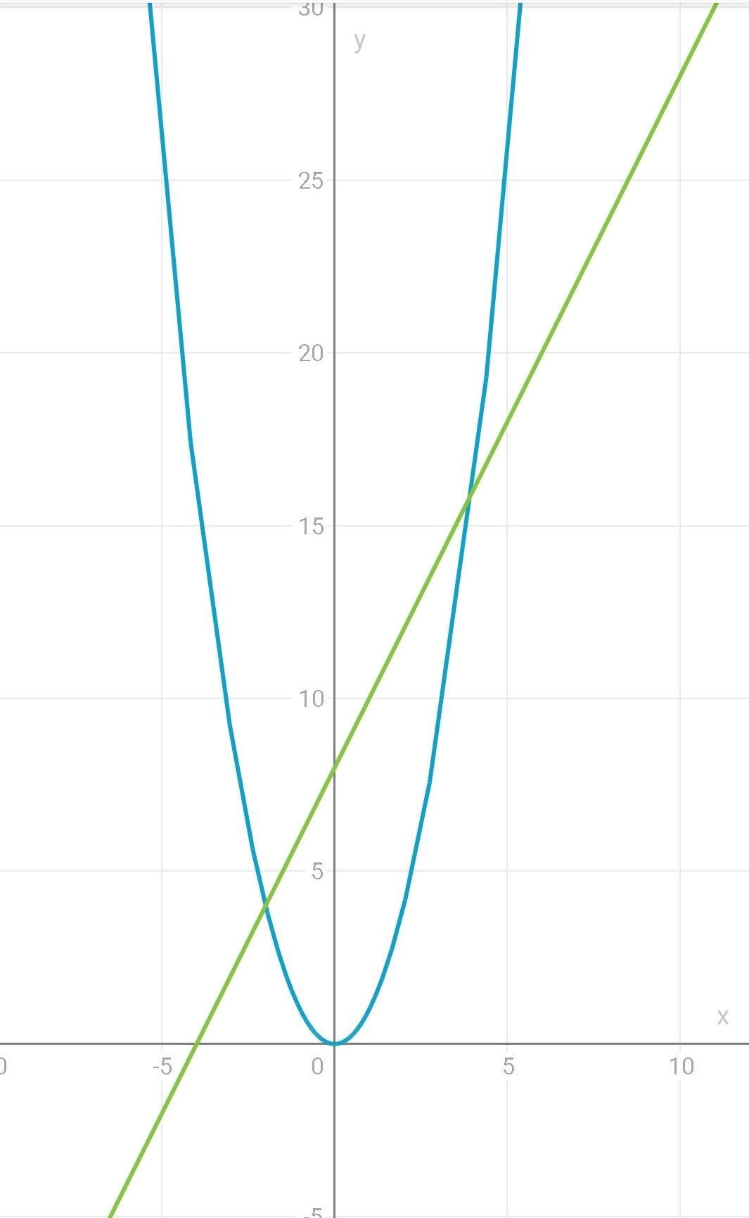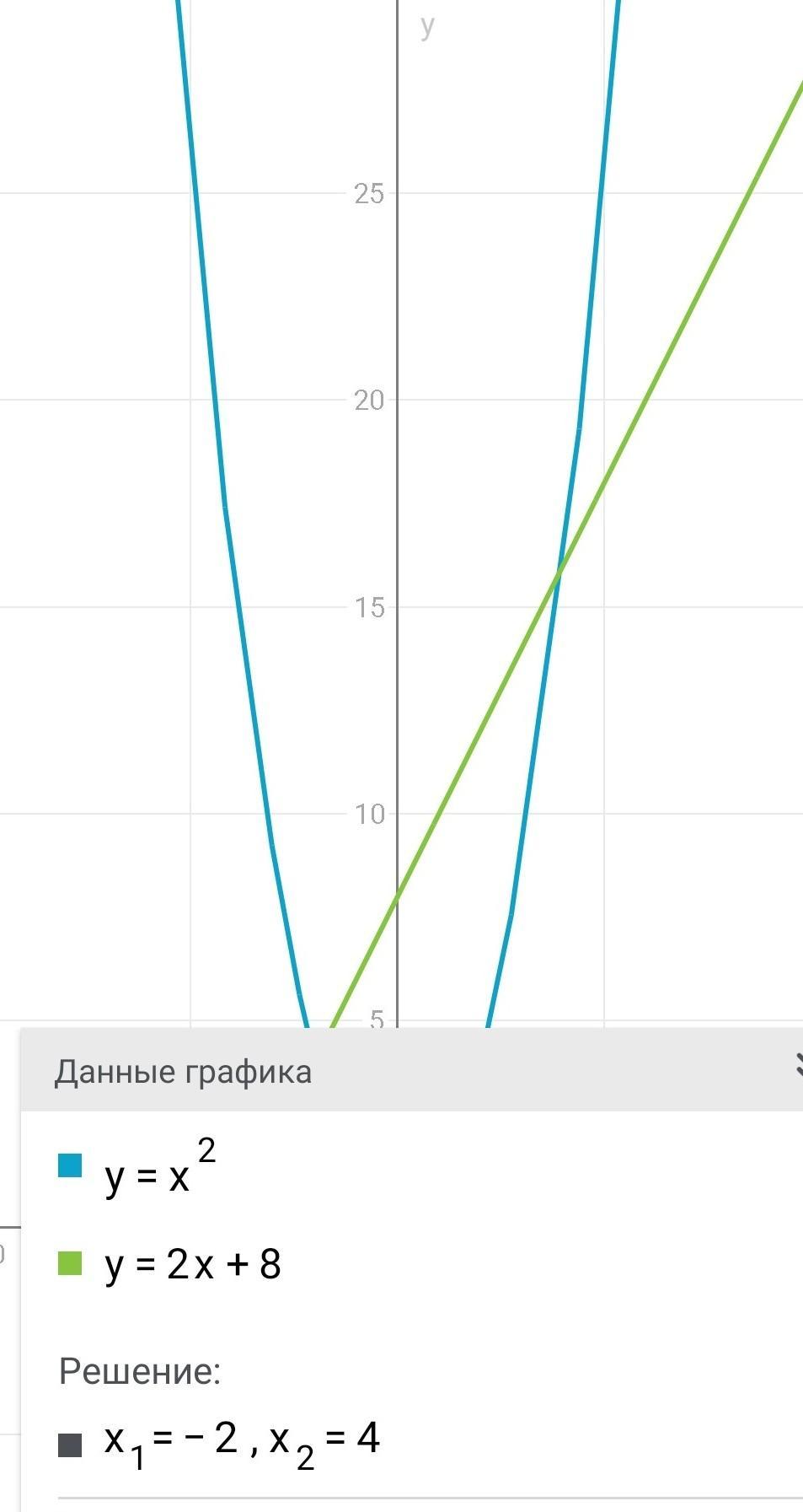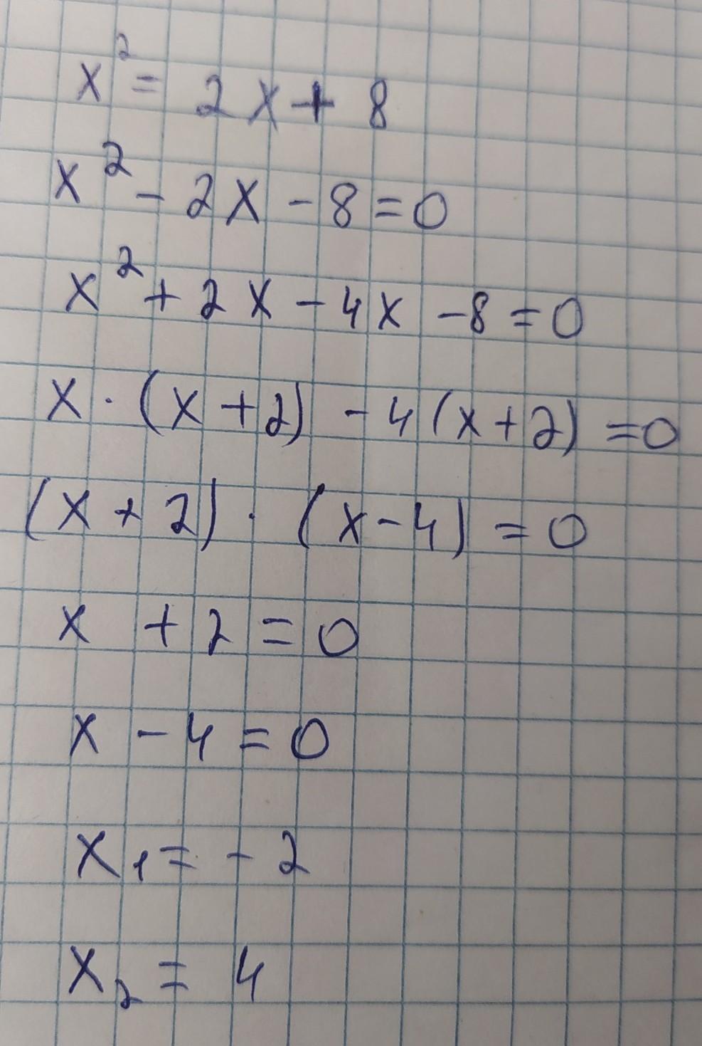 Решите графически уравнение x^2=2x+8 и сфотографируйте и подробное решение