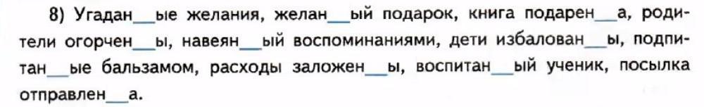 Угаданные, желанный, подарена, огорчены, невеяный, избалованы, подпитанные, заложены, воспитанный, отправлена