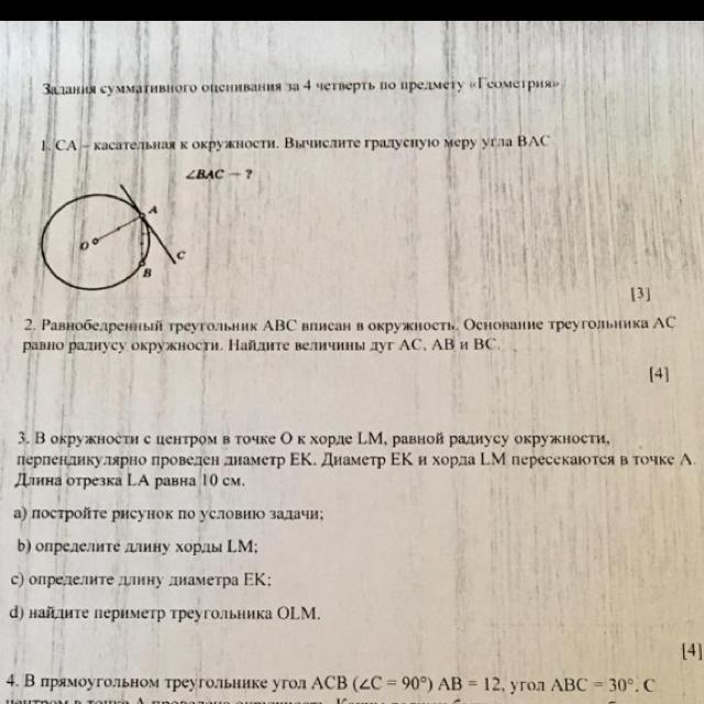 1) Так как радиусы окружности равны, значит, две стороны треугольника ABO равны. ⇒ ΔABO равнобедренный (AO = OB).
