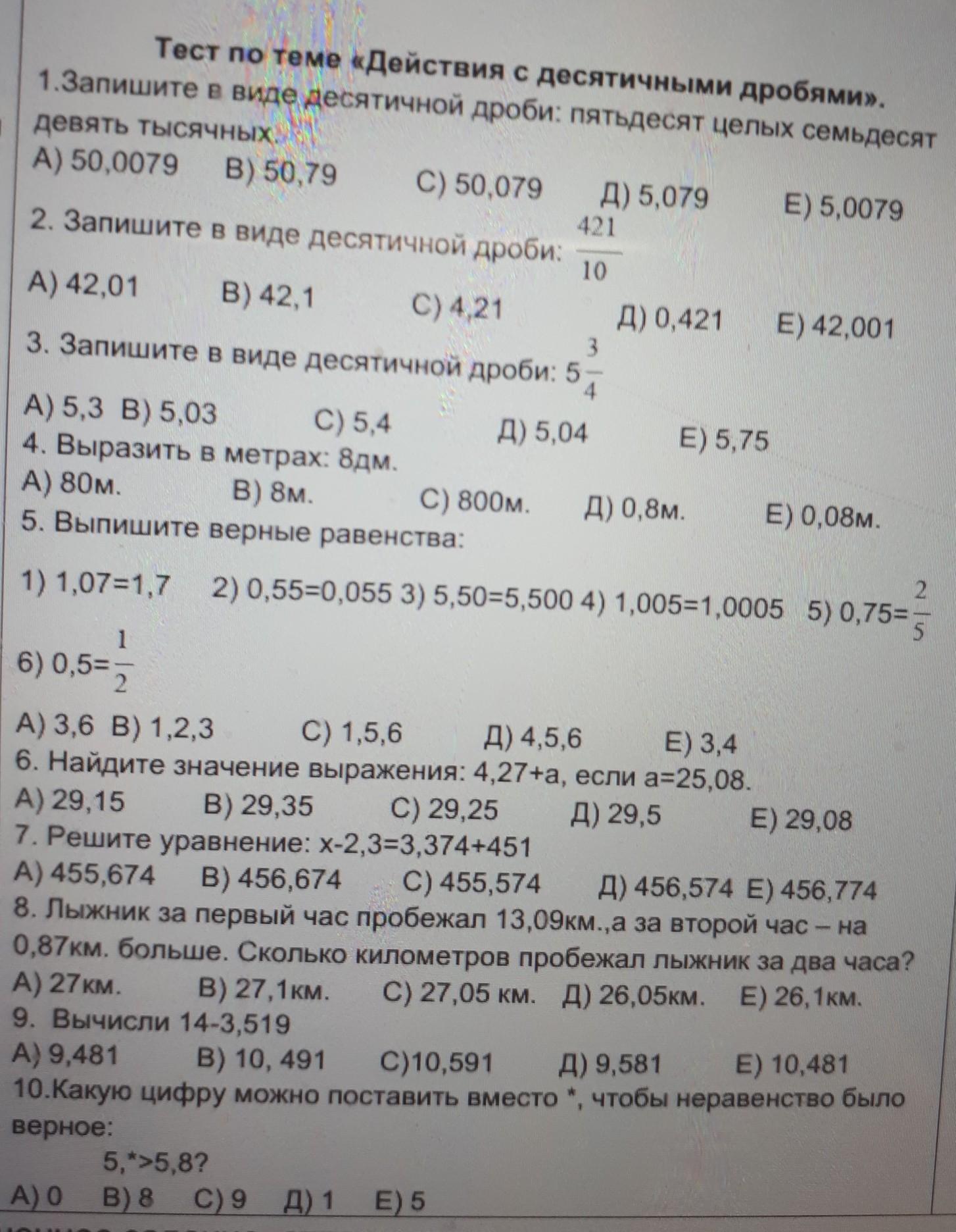 1-C ,2-B ,3-E ,4-B ,5-A ,6-B ,7-B ,8-Е , 9-E, 10-А
