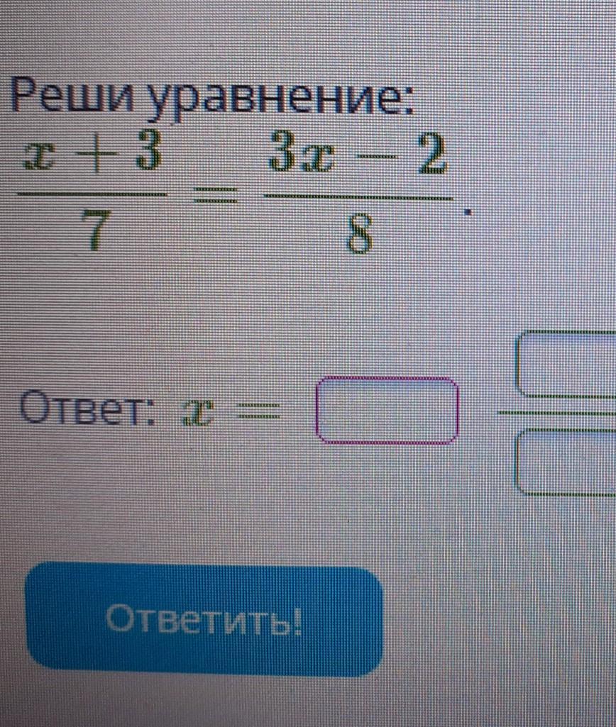 Ответ:8(x+3)=7(3x-2)