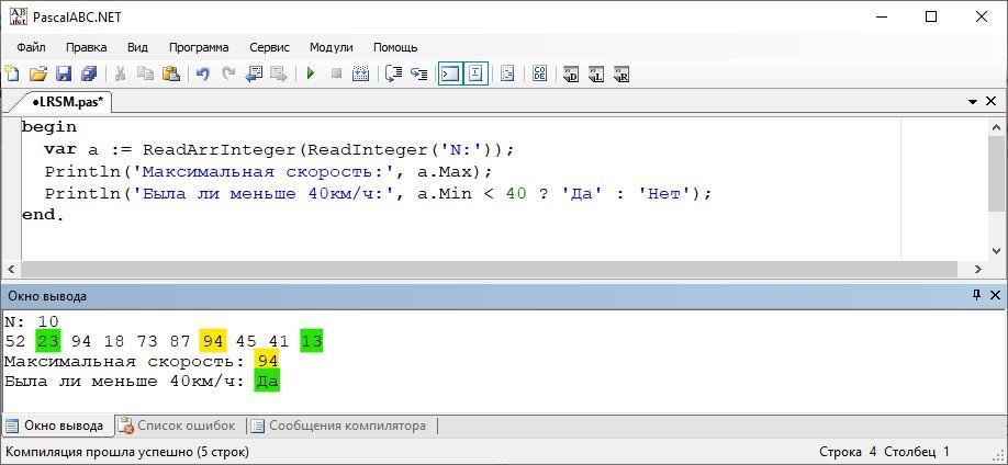 - Println('Была ли меньше 40км/ч:', a.Min < 40 ? 'Да' : 'Нет');
