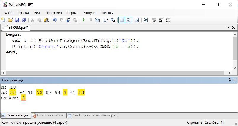 - Println('Ответ:',a.Count(x->x mod 10 = 3));
